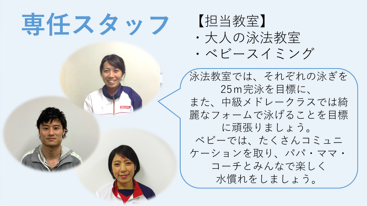 | ・大人の初めての水泳教室 ・大人の泳法教室 ・ベビースイミング | ![]() |