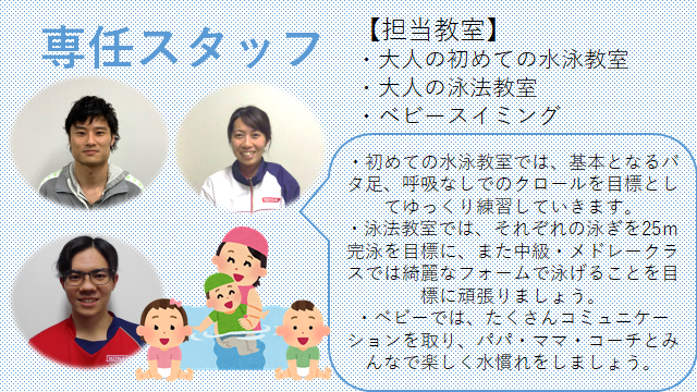 | ・大人の初めての水泳教室 ・大人の泳法教室 ・ベビースイミング | ![]() |
