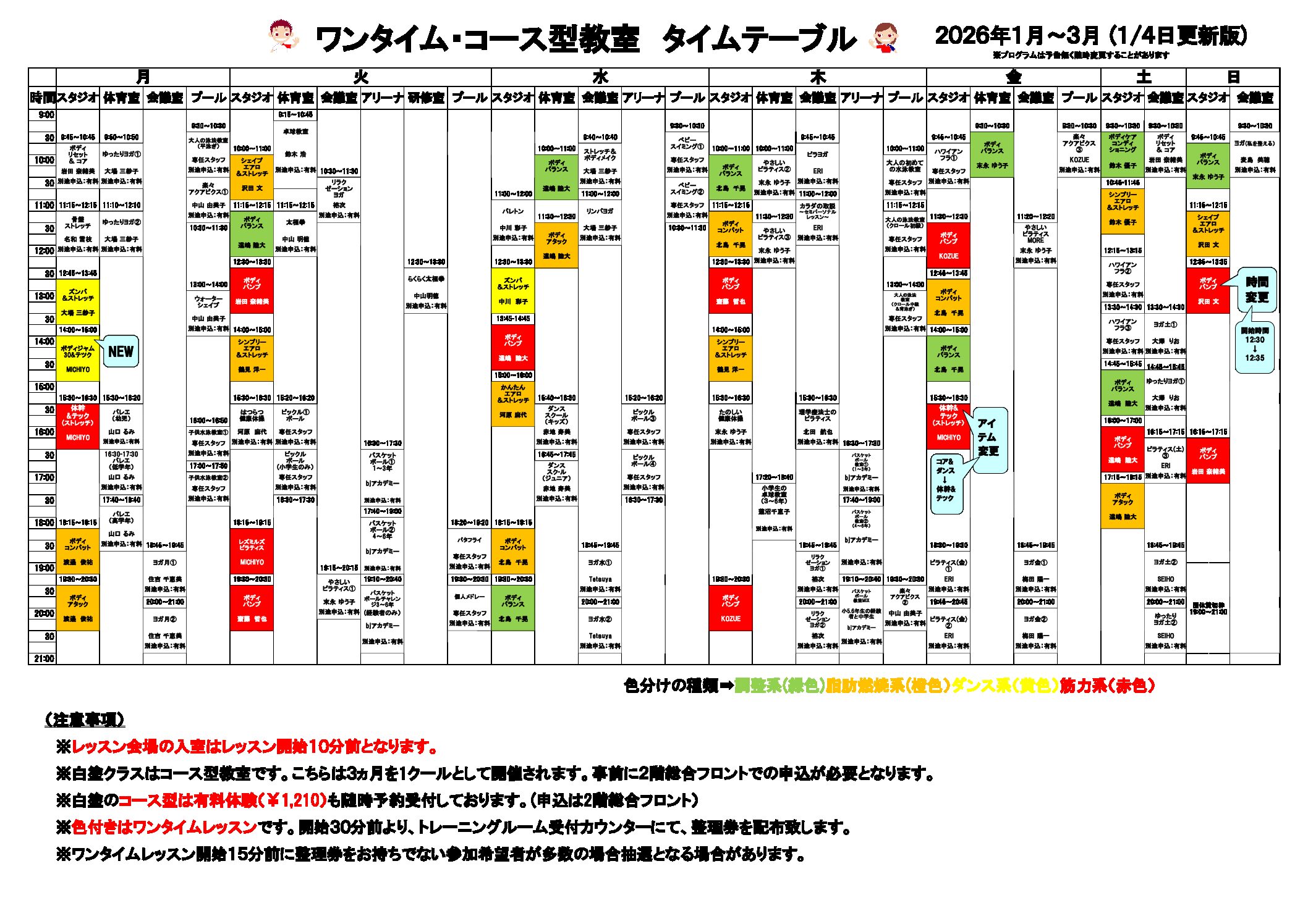 全体レッスンタイムスケジュール